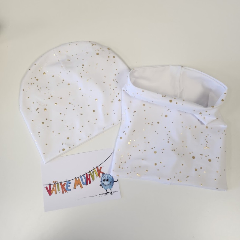 Topeltpuuvillane müts ja sall kuldsed täpid